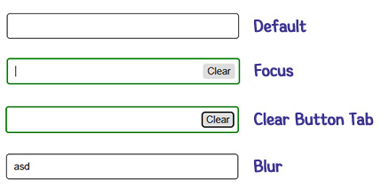 디자인 요소로 인해 JS의 제어가 꼭 필요한 경우가 아닌 기본 유형의 input 필드의 삭제 버튼은 CSS로 간단하게 구현할 수 있습니다.
